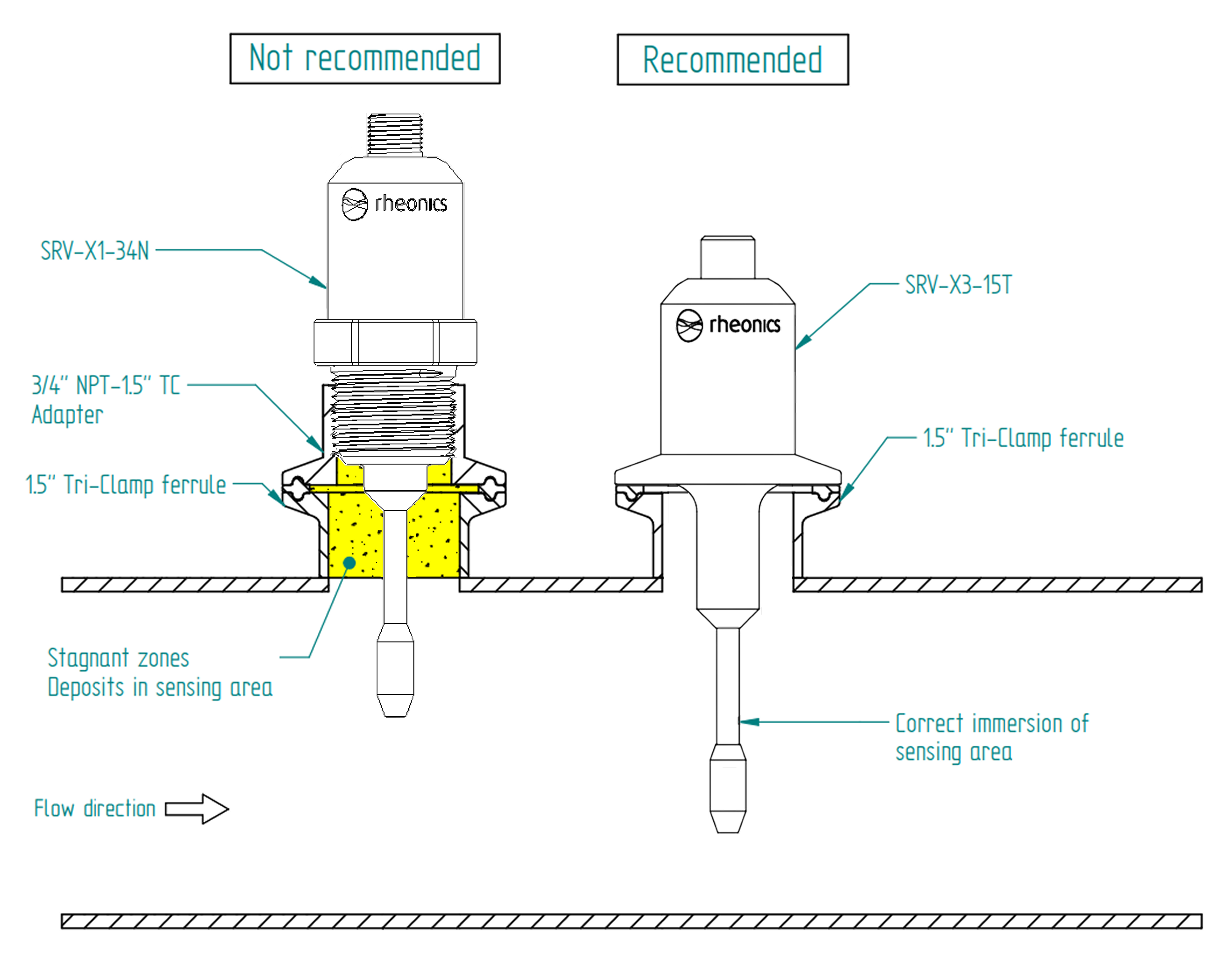3. Installation common issuesAs explained above, for accurate, repeatable and reproducible readings of the SRV it is important to maintain the sensing element immersed and without stagnation zones that can lead to deposits around the sensing area.