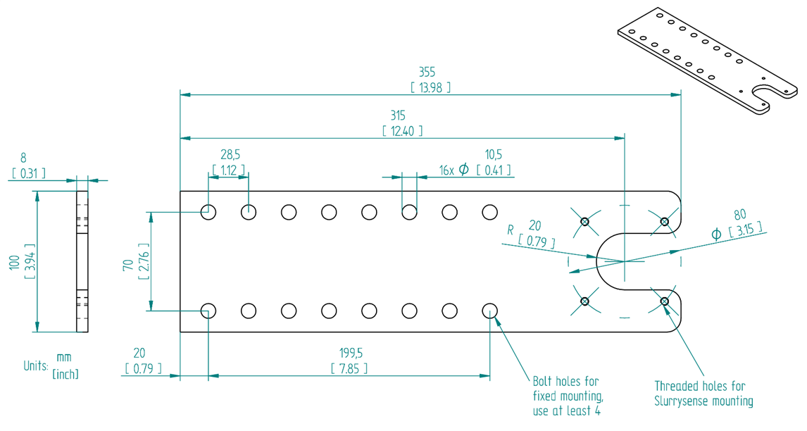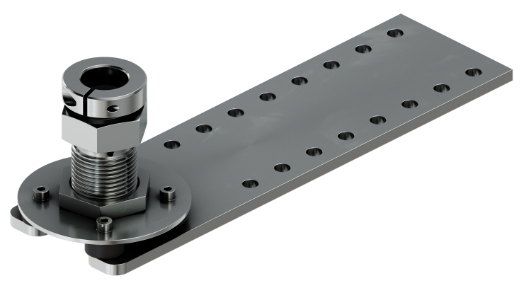 The mounting base plate used in both Mounting Kits is made of 304 material and has 10.5 mm holes for mounting on a fixed point (tank’s lip) using bolts; at least four bolts should be used for secure installation. M8 bolts or similar are recommended.